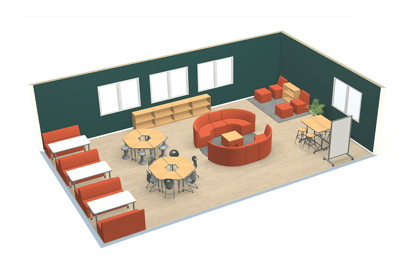 Explore this learning environment for inspiration—then our team of experts can create a custom 3-D layout for your own project. To help simplify planning, this layout also includes a detailed product list. Use the product listing below or contact us for updated pricing for this layout.